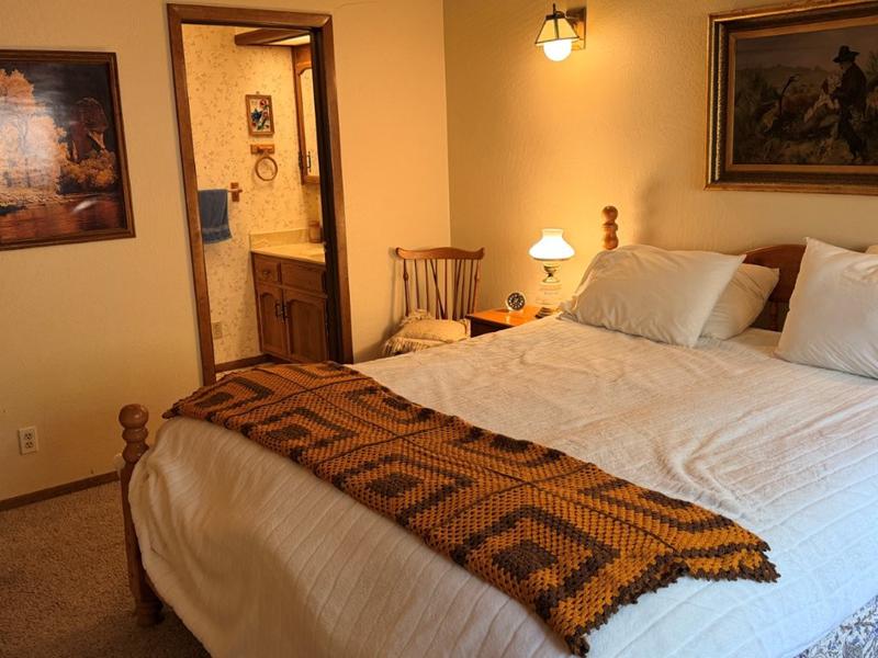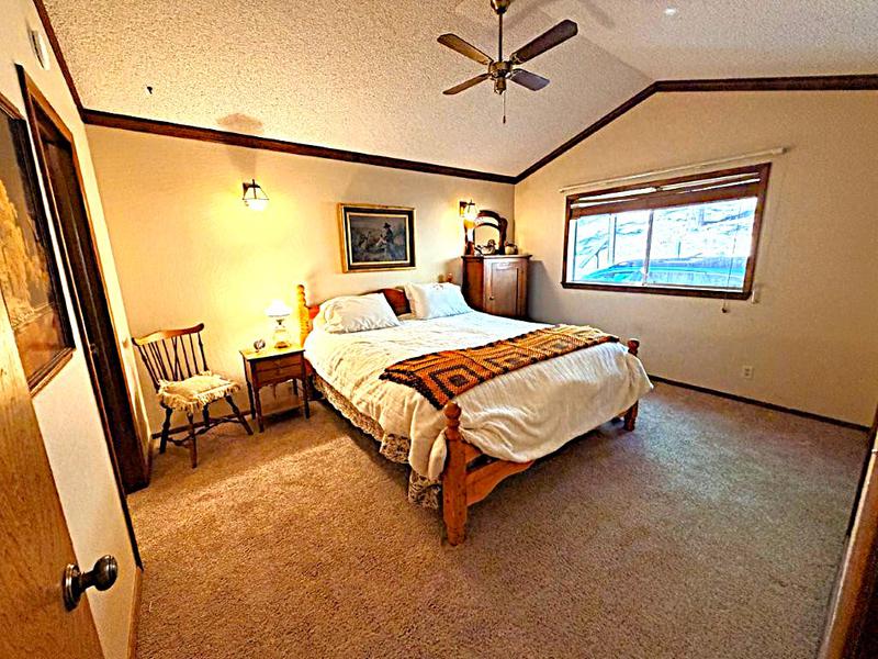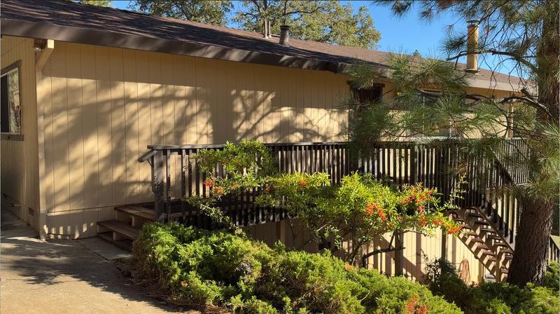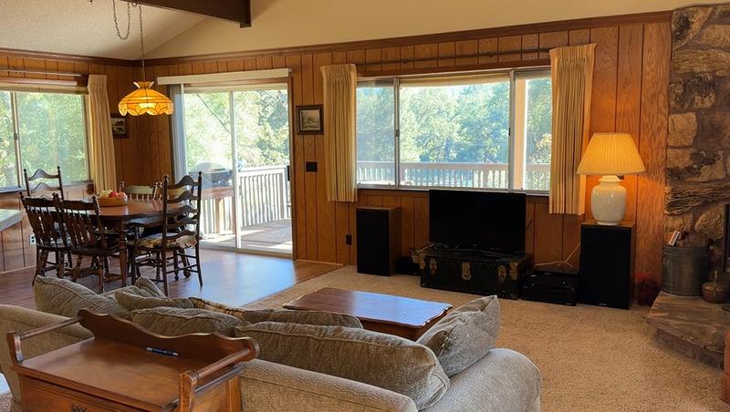 Cute cabin with forested setting. 2 bedroom, 2 bath, 1508 sq. ft. on .38 acre lot. Located just across Pine Mtn. Dr. from the tennis courts and short walk to fisherman’s cove with two docks for fishing, picnic tables and barbecues plus children’s playground. Par course runs up arroyo from playground also. Lake Lodge beach is just around the corner on Pine Mtn. dr.